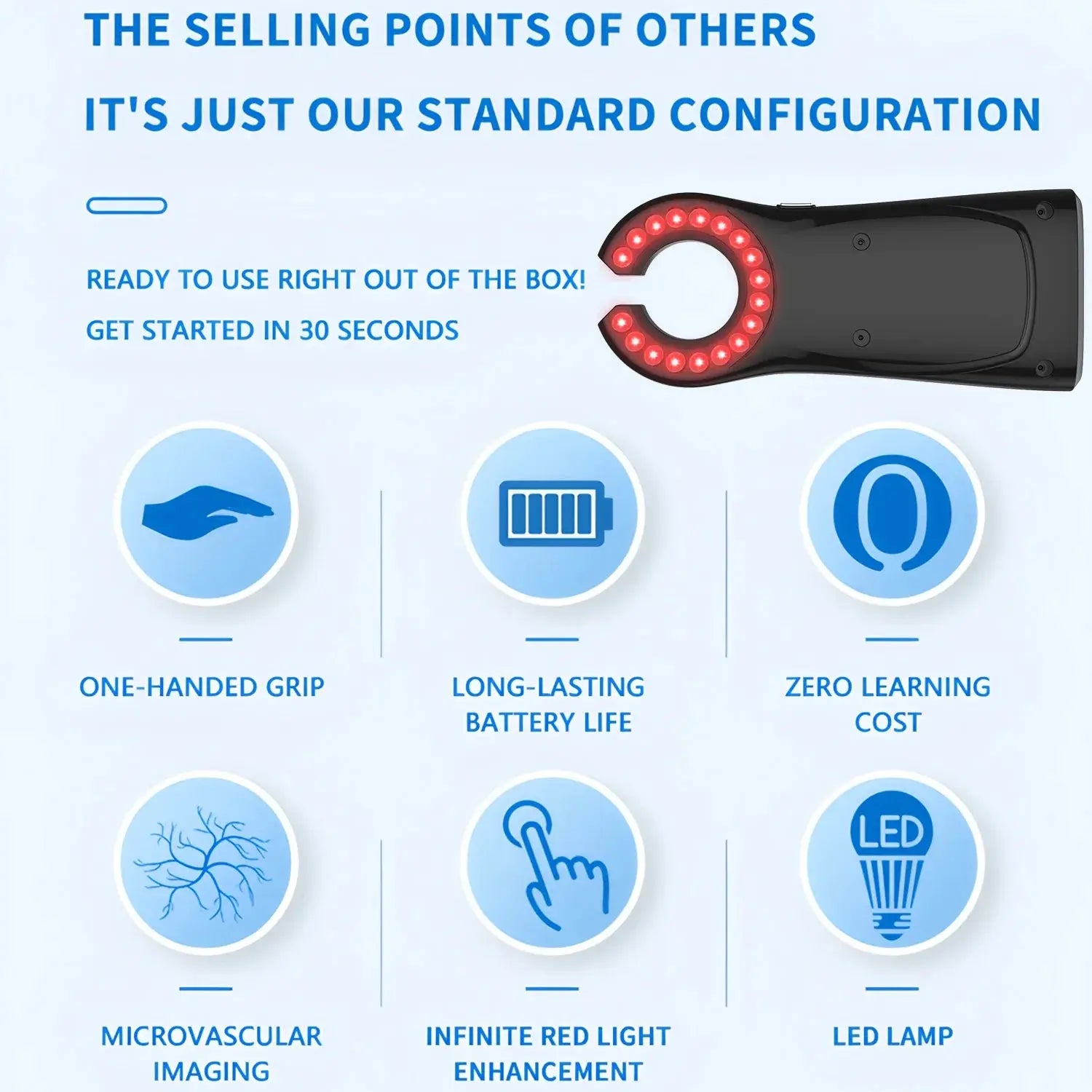 Visión Infalible en Cada Guardia: Experimenta una claridad sin precedentes, incluso bajo las condiciones más desafiantes. Con su avanzada tecnología de escáner infrarrojo LED, identifica venas profundas y difíciles con rapidez y confianza. Reduce el estrés del paciente y optimiza tu tiempo, haciendo que cada inserción sea precisa, incluso en los turnos más exigentes.