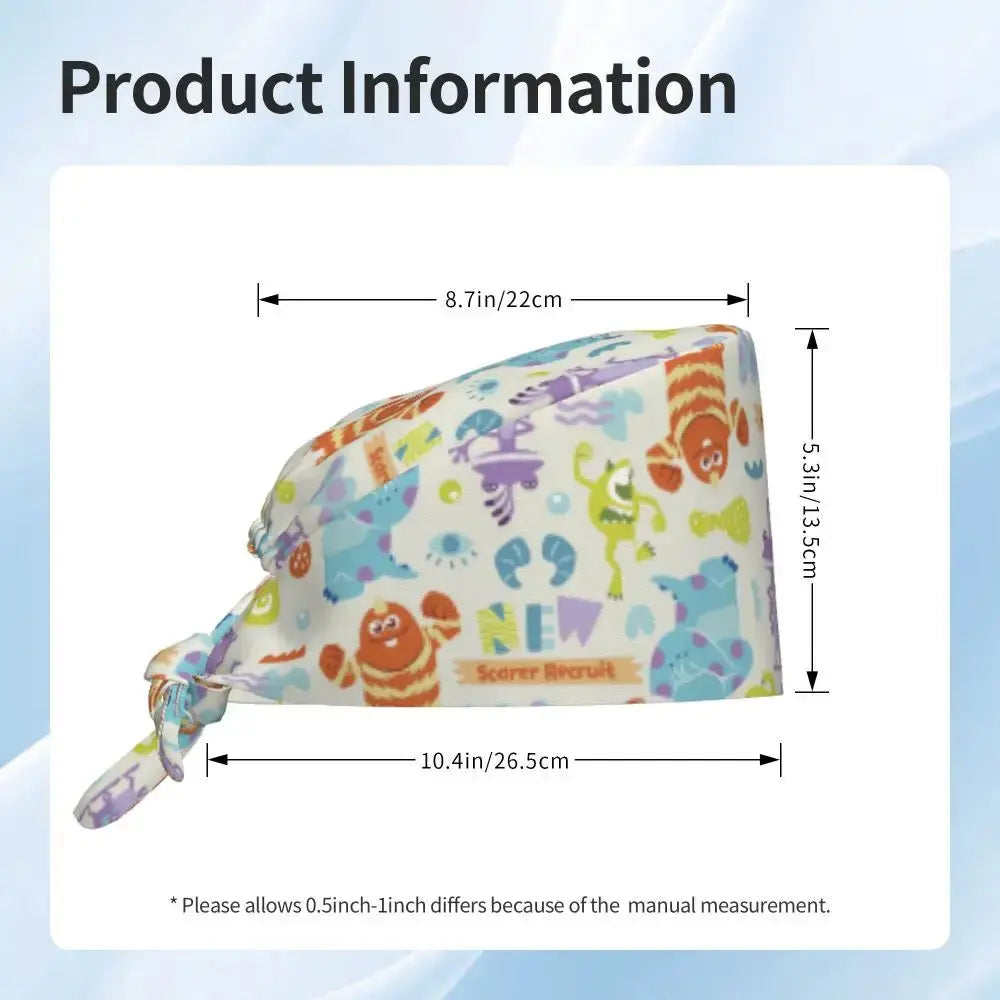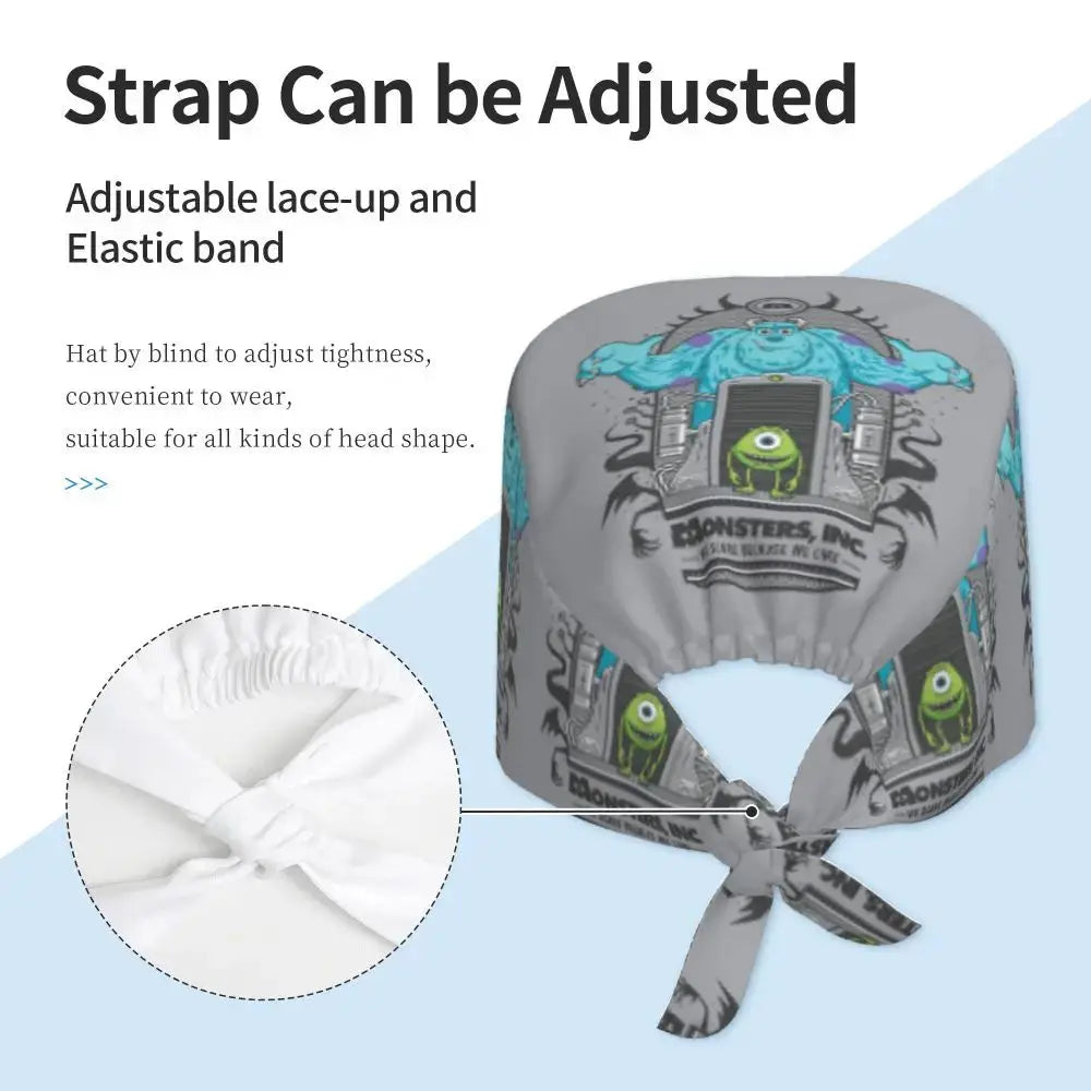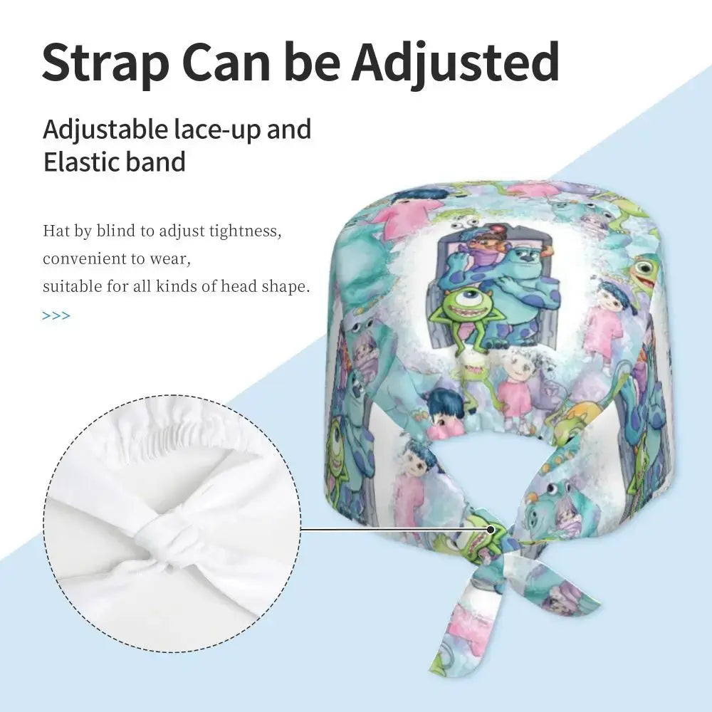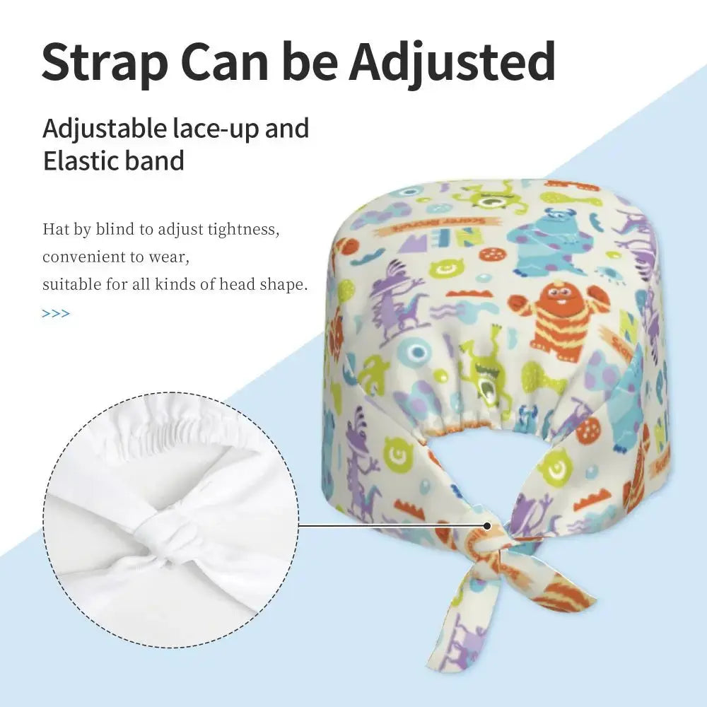 Gorro Quirúrgico Ajustable "MonsterMoxie Pro" – Estampado Animado de Monsters University Respirable Unisex para Enfermeras, Médicos y Cirujanas