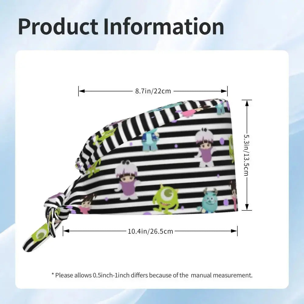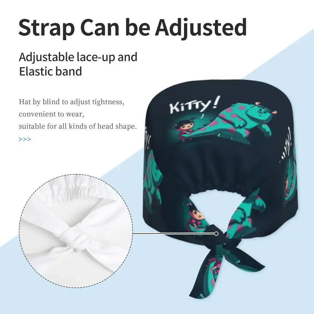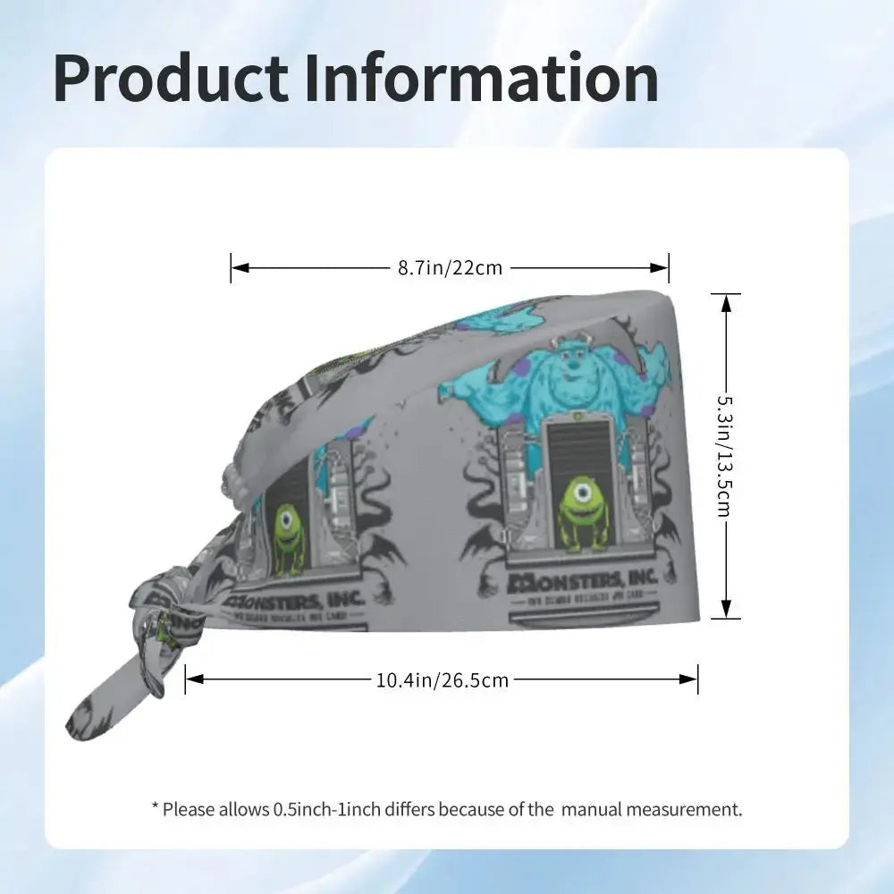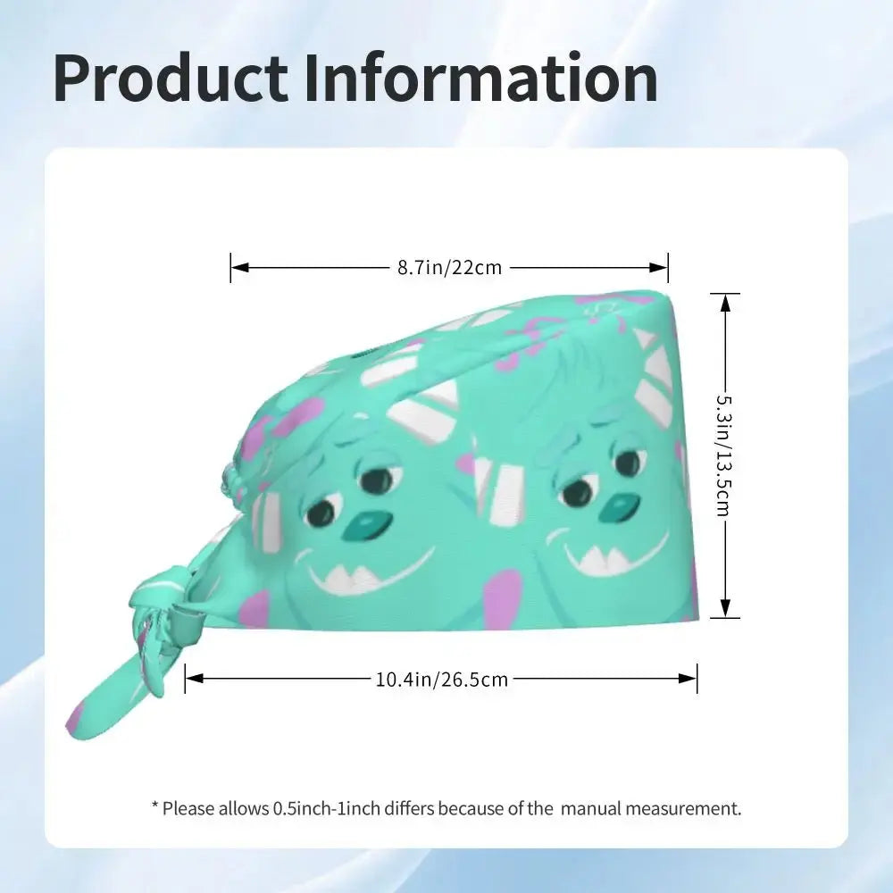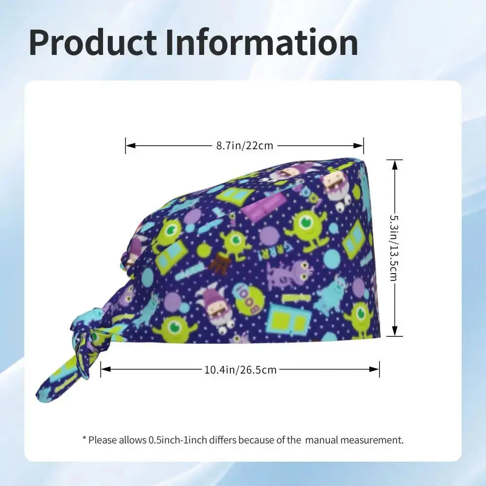 Gorro Quirúrgico Ajustable "MonsterMoxie Pro" – Estampado Animado de Monsters University Respirable Unisex para Enfermeras, Médicos y Cirujanas